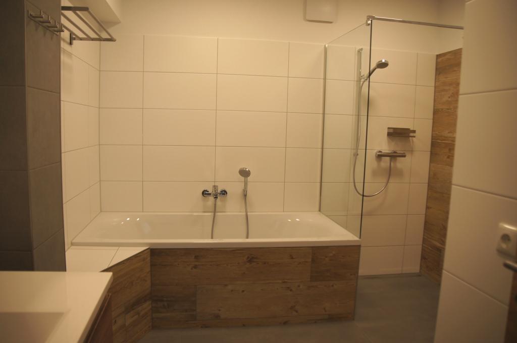 Im Badezimmer gibt es eine Dusche und eine Badewanne. Die große Terrasse bietet eine